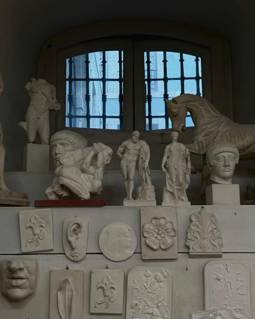 There, we discovered its plaster casting workshop, a space dedicated to reproducing sculptures in plaster from molds taken from the originals. For centuries, these casts have been an essential tool for studying, teaching, and preserving sculptural heritage.